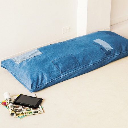 シングル掛け布団を収納すると、ごろ寝にぴったりのマットに変身するデニムマットカバーです。