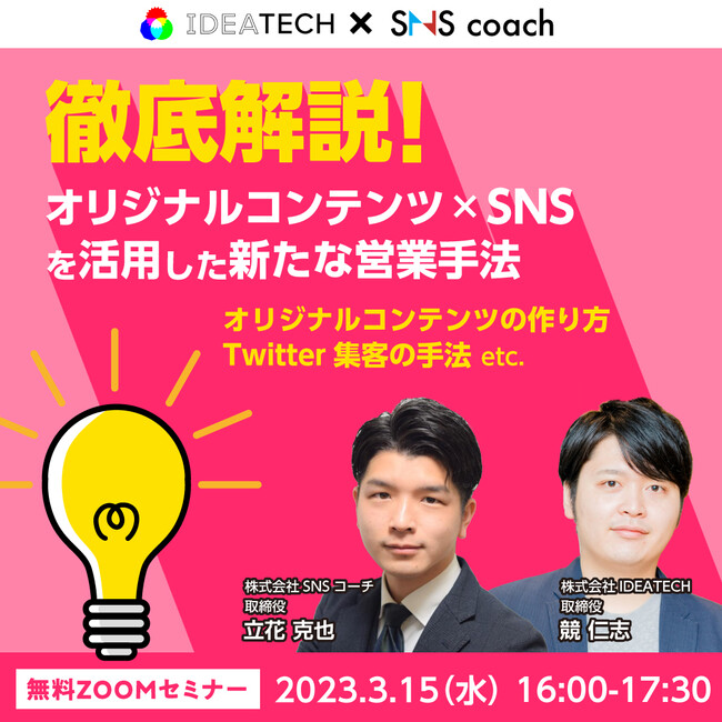 <IDEATECH×SNSコーチ|共催セミナー>オリジナルコンテンツ×SNSを活用した新たな営業手法を徹底解説