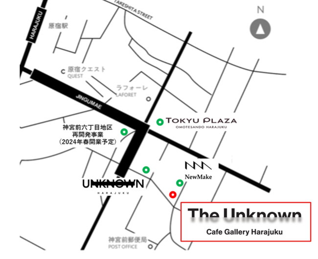 神宮前交差点エリアに位置し、民家をリノベーションしたイベントスペースである「UNKNOWN HARAJUKU」は、ポップアップストアやイベント、展示会、撮影など、様々な用途でご利用いただいており、そのほど近くにオープンする本カフェギャラリーは「“Unknown”な才能に触れる」という同様のコンセプトで展開いたします。