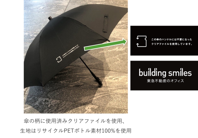 東急不動産株式会社(本社:東京都渋谷区、代表取締役社長:岡田 正志、以下「当社」)は、株式会社サエラ(本社:東京都港区、代表取締役社長:山本 健、以下「サエラ」)と協業し、当社のオフィスビル26物件の入居企業から回収した使用済みクリアファイルを傘の柄に再生し、それを活用した貸出傘を入居企業のワーカーの皆様にご利用いただく、資源循環型のプロジェクト(以下「本プロジェクト」)に取り組みました。