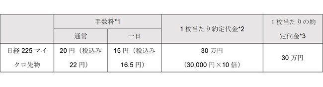 ■日経225マイクロ先物の手数料と取引単位(予定)