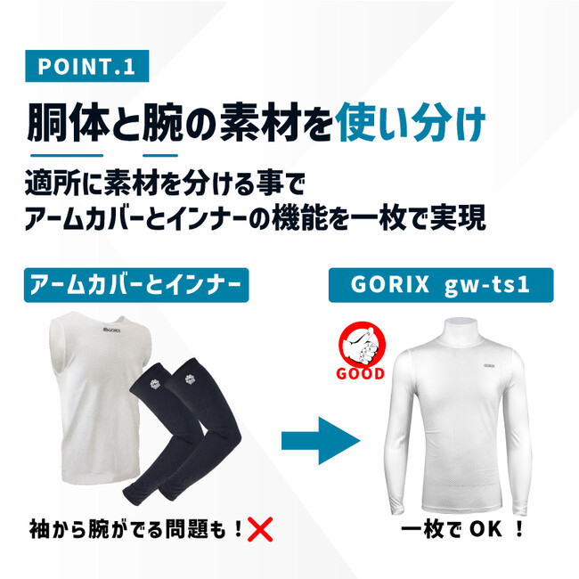 【新商品】【首までカバーするハイネックタイプ!!】自転車パーツブランド「GORIX」から、冷感長袖インナーウェア(GW-TS1 ハイネック) が2色展開で新発売!!
