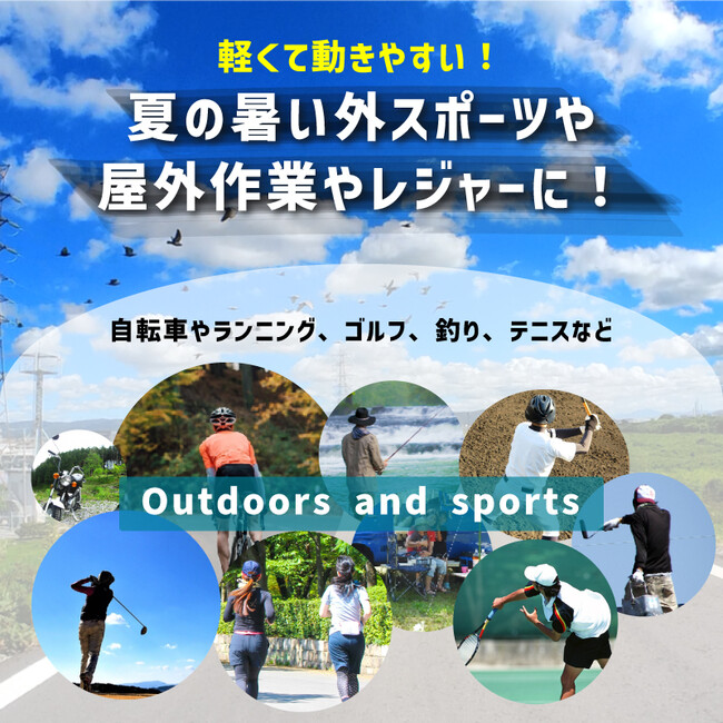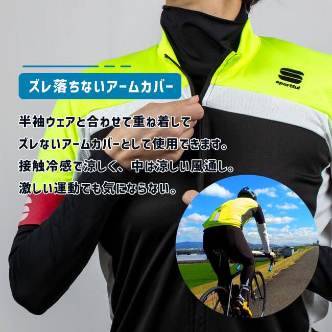 ・腕・首周りは日焼け防止のUVカットと通気性清涼感生地を採用。着用すると涼しいです。