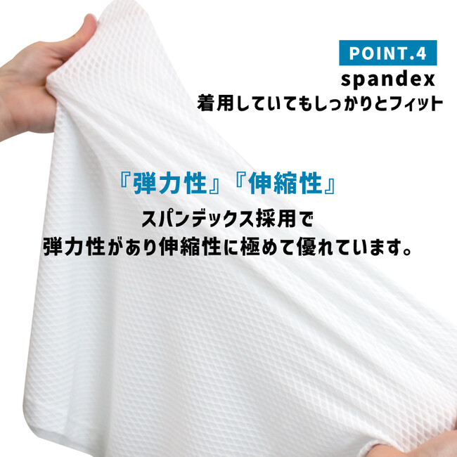 接触冷感で涼しく、胴体部分はメッシュ素材でサラッと着れます。