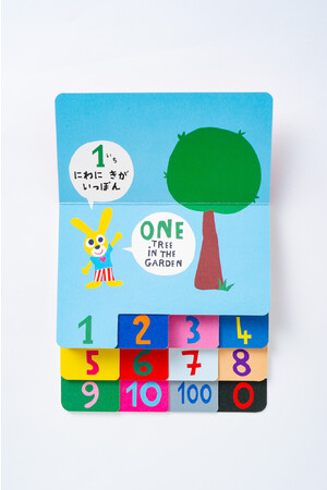 『えほんでおぼえる NUMBERS すうじ』は、赤ちゃんから楽しめるしかけ絵本です。「1」のページを開くと、うさぎのビルが日本語と英語で「1」の数え方を教えてくれるシンプルな構成。楽しみながらめくっているうちに自然とすうじに親しむことができます。