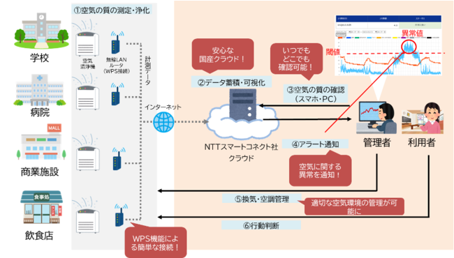 本サービスはこうした状況を踏まえ、IoTに対応した空気清浄機を活用し、空気の質※1を見える化することによって施設の管理者や施設を訪れる人に対して安心安全な空気を提供することを目的としています。