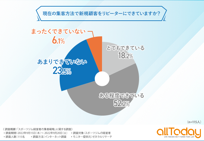 【オールトゥデイ|調査レポート】スポーツジム経営者の約3割がリピーター獲得に苦戦。その理由は継続に向けた集客方法にあり?