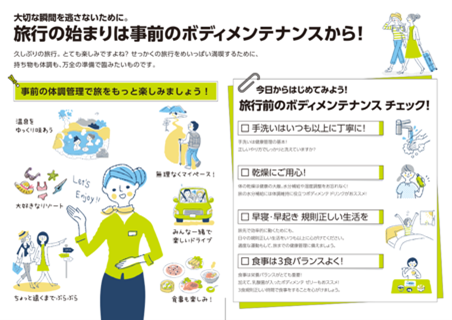 ・実施内容:「旅前 ボディメンテナンス習慣セット」の配布(ボディメンテドリンク1本、旅の健康管理パンフレット※21部) ※お1人様1セット