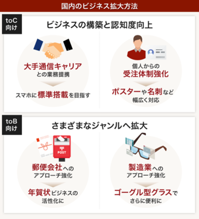 今後は、大手通信キャリア・郵便会社へのアプローチ強化で、toB toC向けにビジネスを拡大いたします。また、海外企業への導入計画も進行中であり、AR技術で“新たな当たり前”を作ることで企業として成長してまいります。