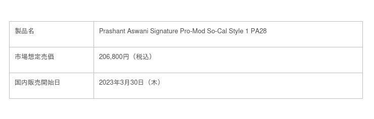 『Prashant Aswani Signature Pro-Mod So-Cal Style 1 PA28』2023年3月30日(木)国内販売開始