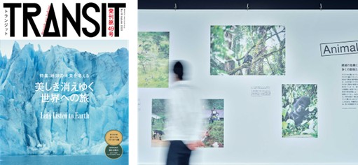 2020年9月にTRANSITから発行された「TRANSIT49号 美しき消えゆく世界への旅」の誌面企画から、“海(Sea)・森(Forest)・動物(Animals)・眺望(The View)”という4つのエリアに分けて再構成した写真/読み物パネルを<SKY GALLERY>回廊内の壁面4箇所に散りばめ、回遊しながら楽しめる空間展示としています。屋上から360度に広がる景色を体験した後、その先に広がる世界のさまざまな環境問題に目を向けるきっかけをつくります。