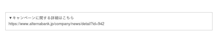 お問い合わせフォーム(お問合せ情報入力):https://www.alternabank.jp/help/inquiry/input