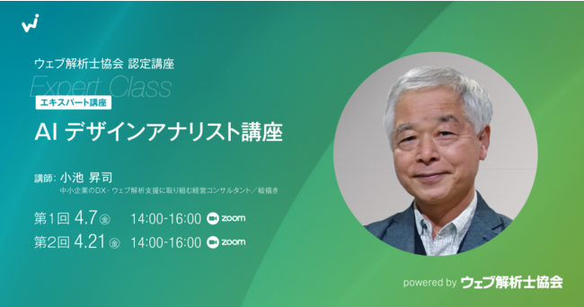 2023/4/7(金)21(金)14:00 - 16:00 【エキスパート講座006】AIデザインアナリスト講座 2日間の講座です