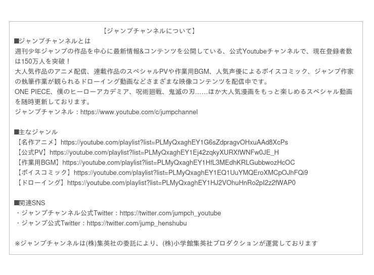 ・ジャンプチャンネル公式Twitter:https://twitter.com/jumpch_youtube