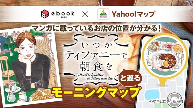 電子書籍販売サイト「ebookjapan」をヤフー株式会社と協力して運営する株式会社イーブックイニシアティブジャパンは、Yahoo! JAPANが提供するマップサービス「Yahoo!マップ」にて「『いつかティファニーで朝食を』と巡るモーニングマップ」を公開いたしました。