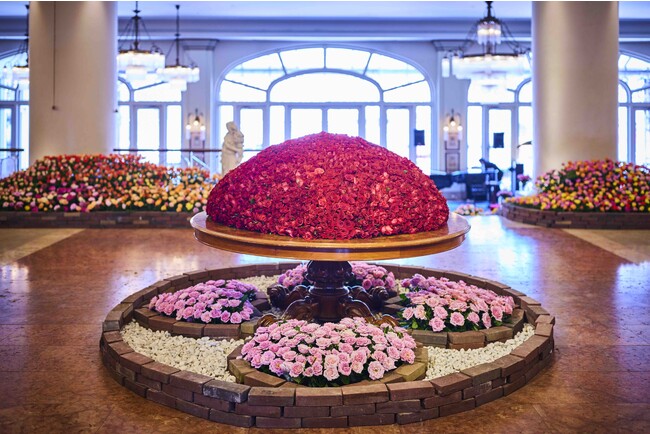 ホテルヨーロッパの重厚感のあるロビーやラウンジなどが約2万本のバラで美しく装飾され、ホテルに入った途端優雅なバラに包まれます。お部屋もバラをあしらった内装のデザイナールームがおすすめ。また上質なバラの香りがいっぱいの朝のバラ園を散歩できるのは宿泊者だけの特権です。