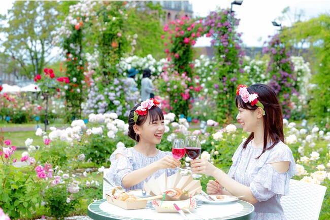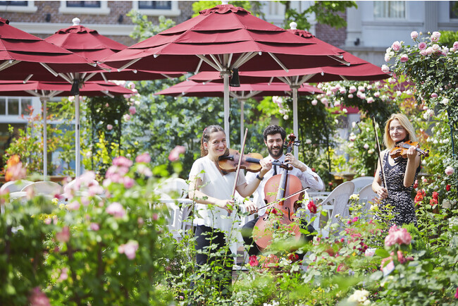 バラ祭の期間限定で「初夏のワイン祭」も開催。イタリアやフランスなどから取り寄せた25種類のボトルワインや5種類の樽生ワインが楽しめます。またアルコールの苦手な方向けのノンアルコールやソフトドリンクもご用意し、どの世代の方もバラ園の中で優雅なひと時を過ごす事が出来ます。今年はバイオリンなどの生演奏も登場。よりラグジュアリーな空間の中で、バラの香りを感じながらワインを楽しんでみてはいかが?