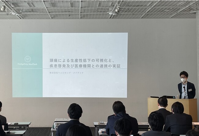 従業員の生産性を可視化する「健康経営サーベイ」と頭痛の受診勧奨プログラム「頭痛ヘッジfor健康経営」を提供し、企業は従業員の健康問題が及ぼす経済的損失とアプローチすべき従業員の属性の把握、従業員の中の頭痛患者に対しては症状学習や医師への受診を促すことで症状改善をサポートすることを目指しました。