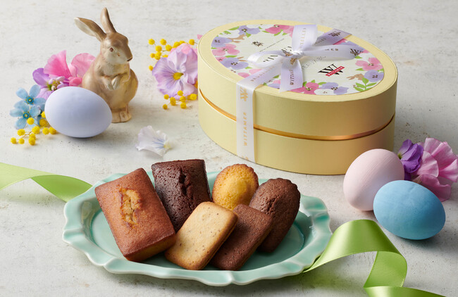 イースターエッグをイメージした淡い黄色のBOXにロイヤル・マドレーヌやサブレ・ショコラ、フィナンシェなどを詰め合わせました。