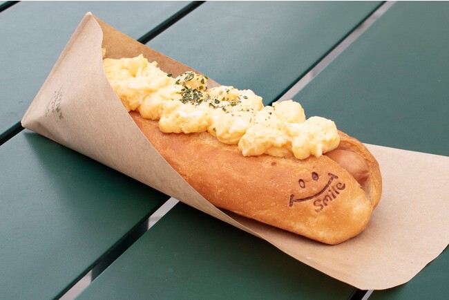 こだわりのホットドッグにたっぷりのたまごサラダを挟んで。