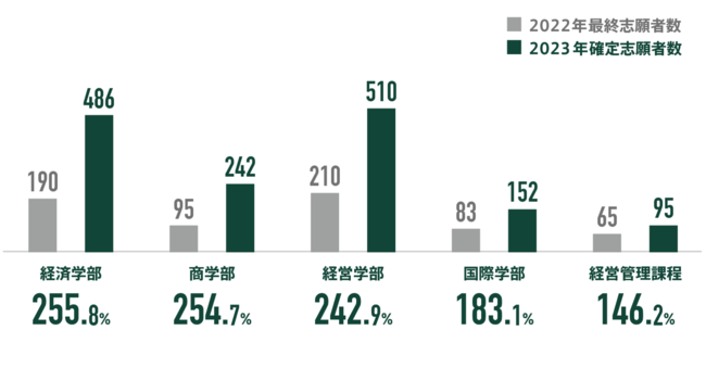 名古屋商科大学は、2023年度一般選抜入試において、志願者数1,485人、対前年比225%となり、全国の私立大学で1位の増加率を達成しました。