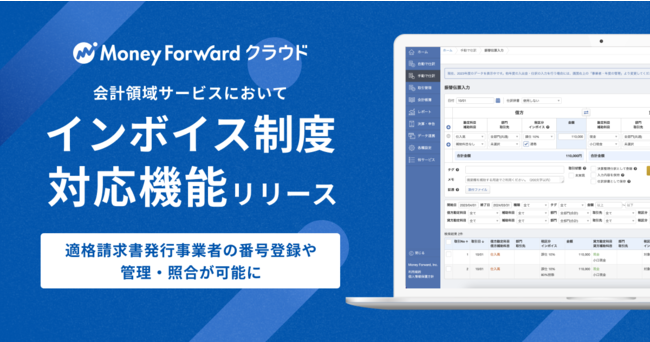 『マネーフォワード クラウド』の会計領域のサービスにおいて適格請求書発行事業者の番号登録・管理・照合などができるインボイス制度対応機能を提供開始