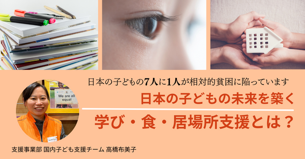 こうした知見をもとに、貧困が子どもたちの将来へおよぼす影響や、子どもたちを支えるために必要なことは何なのか、国内支援事業のスタッフとの対談形式で、皆さまにお伝えいたします。