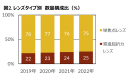 それぞれの金額前年比は、単焦点レンズが1%増、累進屈折力レンズ4%増と累進屈折力レンズの成長率が単焦点レンズを上回った。近年、メガネチェーン店では40代以降の消費者に対し、高価格帯である累進屈折力レンズを積極的に推奨する動きが見られ、同レンズの数量構成比は、ここ数年で徐々に増加をしている(図2) 。