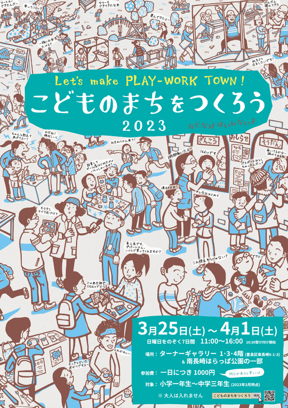 PLAY-WORK実行委員会(本社:東京都新宿区、代表理事:さかたともえ、企画運営:株式会社ティンカリングタウン)は豊島区ターナーギャラリーにて、2023年3月25日(土)から4月1日(土)の日曜日を除く7日間、「Let's make PLAY-WORK TOWN! こどものまちをつくろう」を開催します。