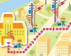 まちなかに設置されたカメラとビーコンのインフラ網を利用し、お子さまや高齢者を見守ります。