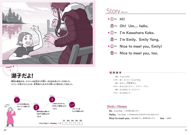 カッパの父と人間の母を持つ湖子が繰り広げる奇想天外なストーリーを、キャラクターになりきって音読! 中学1年生から2年生の途中までに学習する文法ポイントも、まとめて確認できます。