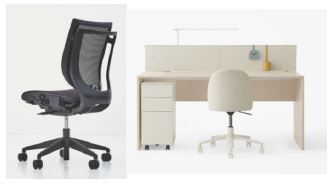※2 アイリスチトセ製品の「VIGOR-OBP」と「TASQ-OBP」。背面や座面、脚部に海洋プラスチック再生樹脂を使用。
