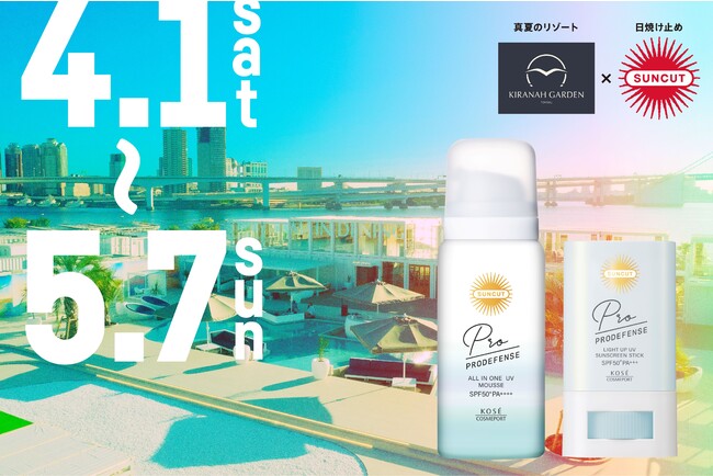 4月1日(土)~5月7日(日)の期間、コーセーコスメポート株式会社が手掛ける日やけ止めブランド『サンカット(R)』とコラボレーション。紫外線が気になりはじめる季節に、日差しがたっぷり注ぐ「キラナガーデン豊洲」で、思う存分楽しんでもらえるコンテンツやイベント・キャンペーンを開催いたします。