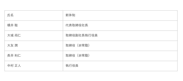 し、新たに横井 聡が代表取締役社長に就任いたします。また、執行体制も変更となりますのでお知らせいたしま