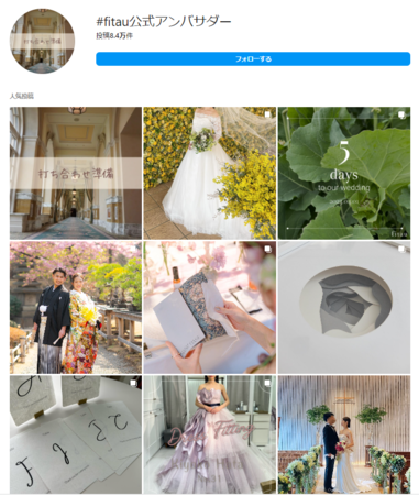 作ったばかりの花嫁アカウントであっても、ハッシュタグに「#fitau公式アンバサダー」をつけて発信していただくことによって、fitau公式アンバサダー同士のコミュニケーションのきっかけとなっております。