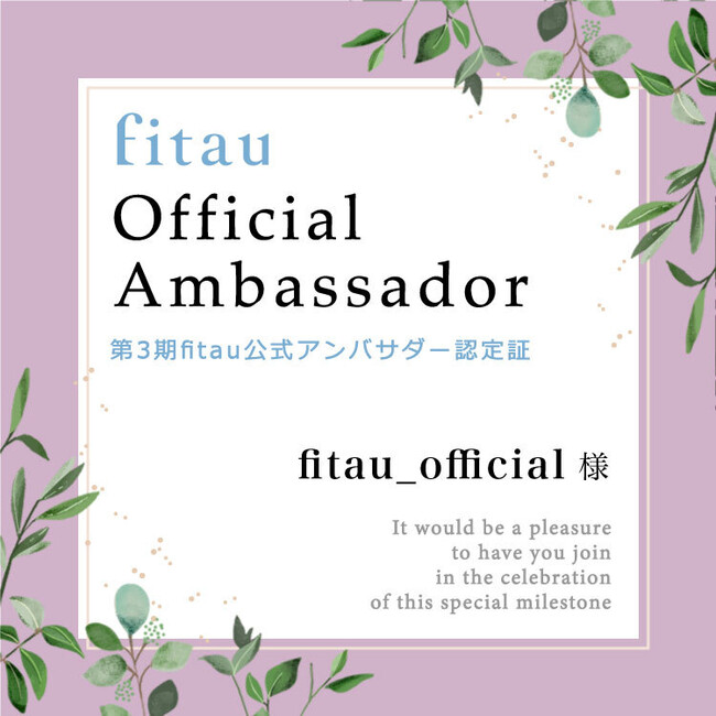 fitau公式アンバサダーに任命された方には、ご自身のアカウント名が記載されたオリジナルの認定証をプレゼントしています。