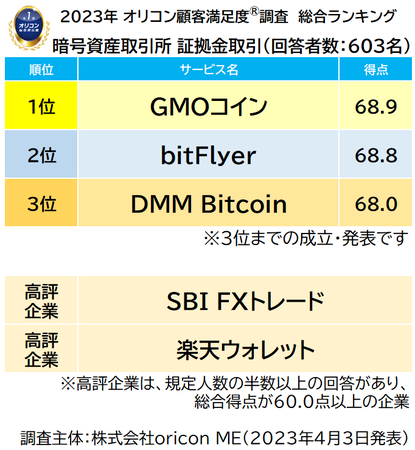《調査概要》 2023年 オリコン顧客満足度(R)調査 暗号資産取引所 証拠金取引 ランキング