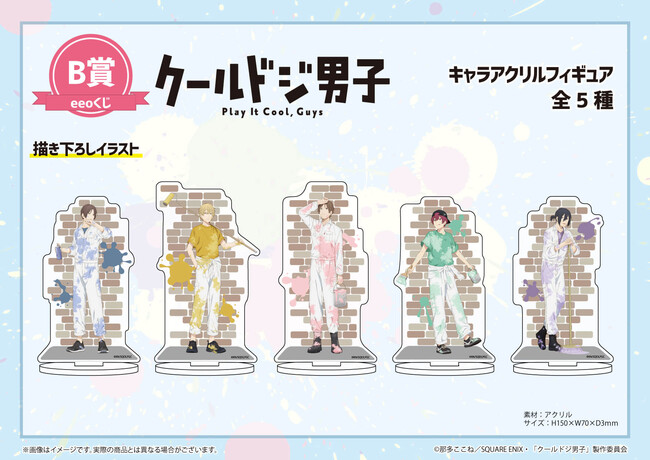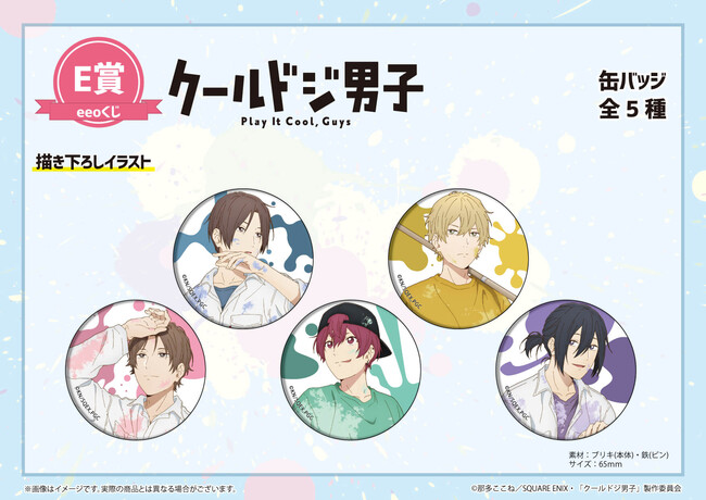 TVアニメ『クールドジ男子』のオンラインくじ「eeoくじ」が登場! 4月3日よりeeo Store(通販)にて発売され、描き下ろしイラストを使用した5アイテム21種の豪華景品が当たります。