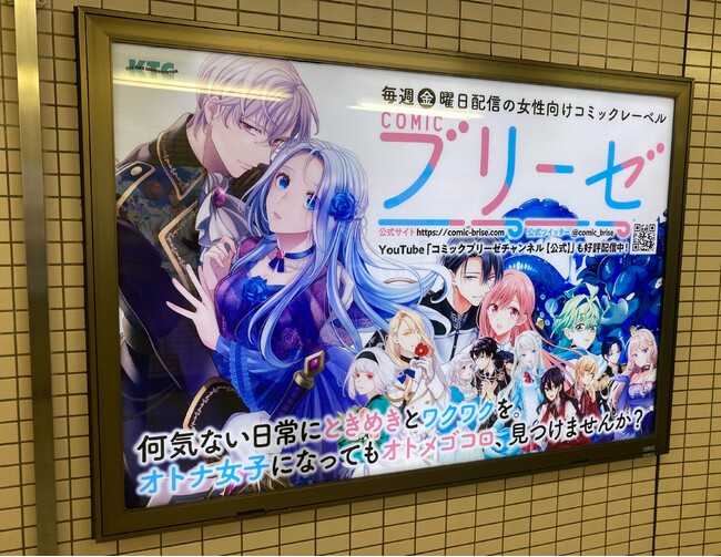 キルタイムコミュニケーション(東京都中央区)は、東京メトロ丸ノ内線池袋駅コンコースにある、オトナ女子向けWEBコミックレーベル「コミックブリーゼ」の電照看板のデザインを新しいものに変更いたしました。