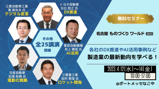 名古屋 ものづくり ワールド 2023 セミナー 会期:2023年4月12日[水]~14日[金] 会場:ポートメッセなごや
