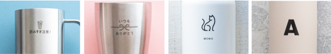 このたび、マークやメッセージなどのデザイン25種類を新たに追加、さらに20種類以上を刷新し、リニューアルしました。豊富なデザインからお好きなものをお選びいただけます。また、全国4店舗に展開している直営店「サーモス スタイリングストア」のみで名入れ対応していた21種の製品が「サーモス オンラインショップ」でもご注文が可能となりました。真空断熱タンブラーや真空断熱ケータイマグなど計36種の製品の中からお選びいただくことができます。