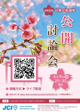 台東区長選挙に向けた公開討論会を開催、立候補予定者のクロストークを2023年4月9日(日)20:30よりニコニコ生放送でライブ配信