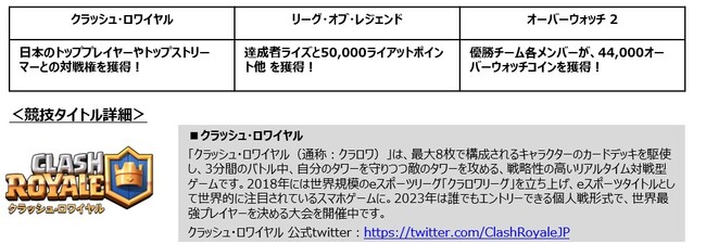 ※クラッシュ・ロワイヤル/オーバーウォッチ 2/リーグ・オブ・レジェンド/ヴァロラント部門は準決勝(ベスト4)からの配信となります