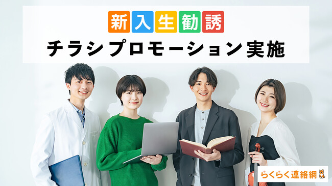 当社の運営する団体活動向けのグループコミュニケーションサービス「らくらく連絡網」は大学生がサークル活動のための諸連絡ツールとしても広く利用されており、また当社は「大学生広告ナビ」を運営するなど大学生に特化したセールスプロモーション事業を行っております。これらを基盤とし、当社または当社パートナーがネットワークする大学サークルを対象に、3年ぶりに「新入生勧誘チラシプロモーション」を実施し、このキャンペーンにより約40万枚の新歓チラシを全国の大学にて配布しました。