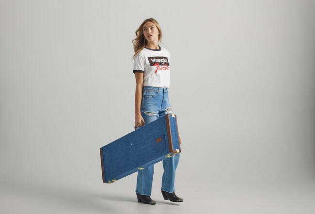 今回発売となるアクセサリーコレクションは、何十年にもわたって大胆な姿勢と人生観を誇るアーティストたちのスタイルを形成してきたデニムを称え、ロックンロール文化の自己表現と独立心を根ざしたあらゆるスタイルとパフォーマンスに対応するアクセサリーをラインナップしています。細部にまでこだわった各アイテムは、両ブランドを象徴する時代を超えたオマージュであり、本物のWrangler素材を使用しています。