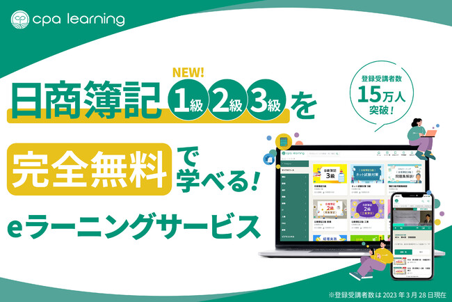 CPAエクセレントパートナーズ株式会社(所在地:東京都新宿区、代表取締役:国見 健介)は、 4月3日より、運営する会計人材に役立つ知識を学べるe-learningプラットフォーム「CPAラーニング」※1 において、日商簿記1級の講義動画の無料公開※2 を開始します。これによりCPAラーニングでは、日商簿記1~3級全編150本以上の講義動画・テキスト・問題集が完全無料で学習ができるようになります。また同時点での登録受講者数が15万人※3 を突破しましたので、お知らせします。