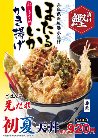 ■てんや初登場!「ほたるいかと紅生姜のかき揚げ」と「生姜醤油漬けかつお」で初夏を感じる『初夏天丼』