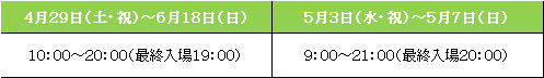 【営業時間】イベント期間:2023年4月29日(土・祝)~6月18日(日)