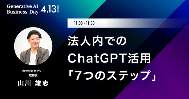 【4月13日(木)開催】ChatGPTや生成AIのビジネス活用を学ぶ祭典「Generative AI Business Day」に株式会社ギブリー取締役の山川雄志が登壇