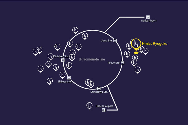 所在地:東京都墨田区石原1-5-9最寄り駅:都営大江戸線「両国」駅徒歩5分 / JR総武線「両国」駅徒歩12分構造・規模:鉄筋コンクリート造 地上7階建総戸数:18戸間取り:1Rタイプ、1DKタイプ居室面積:25.26平方メートル ~27.09平方メートル 運営:Hmlet Japan株式会社URL:https://hmletjapan.com/property/hmlet%e4%b8%a1%e5%9b%bd/